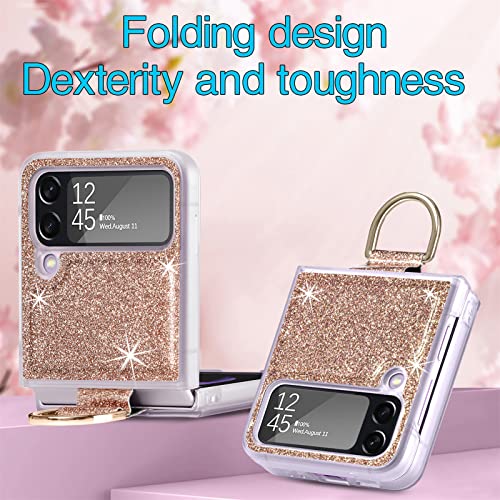 Custodia per Samsung Galaxy Z Flip 4, in silicone con glitter Sparkle Galaxy Z Flip 4, con supporto ad anello a 360 gradi, morbido TPU Bumper rigido per Samsung Z Flip 4, oro