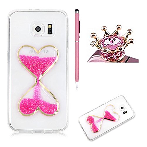 Custodia per Samsung Galaxy S7,SKYXD Cover Glitter Brillantini Cristallo Trasparente Silicone Gel TPU Custodia Amore Clessidre Flusso Sabbie Acqua Liquido Disegni Creativo Colorata per Samsung Galaxy S7,Antiurto 3D Red Rose Love Unico Chic Disegno Case con Carino Spina Della Polvere e Bella Stylus Touch Penna