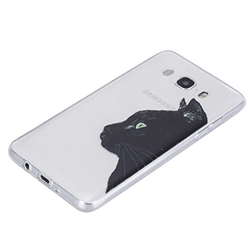 Custodia per Samsung Galaxy J510 J5(2016), SKYXD Telefono Cover Sottile Morbido Trasparente Silicone Gel TPU Colorata Antiurto Protettiva Custodia Cellulare per Samsung Galaxy J510 J5(2016) con Glitter Spina Della Polvere e Stylus Touch Penna (Faccia laterale Gatto nero)