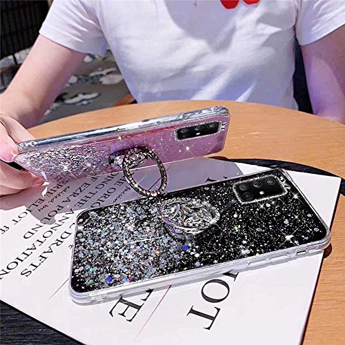 Custodia per Samsung Galaxy M31 con supporto ad anello di diamante, per Galaxy M31, lucida, con stella glitterata, trasparente, in silicone TPU, nero