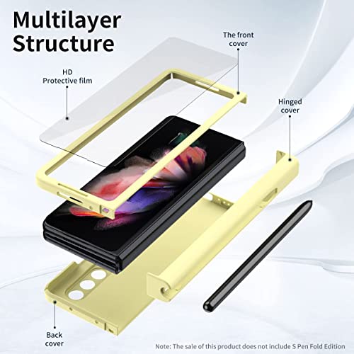 Custodia per Samsung Galaxy Z Fold 3 con supporto per penna 5G, anti-graffio, anti-impronte, sottile, sottile, per Samsung Galaxy Z Fold 3 (giallo)