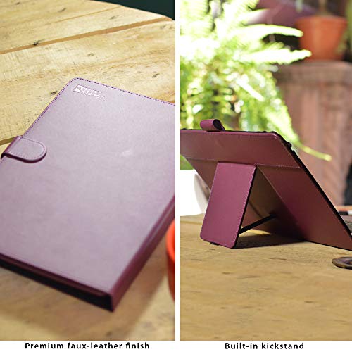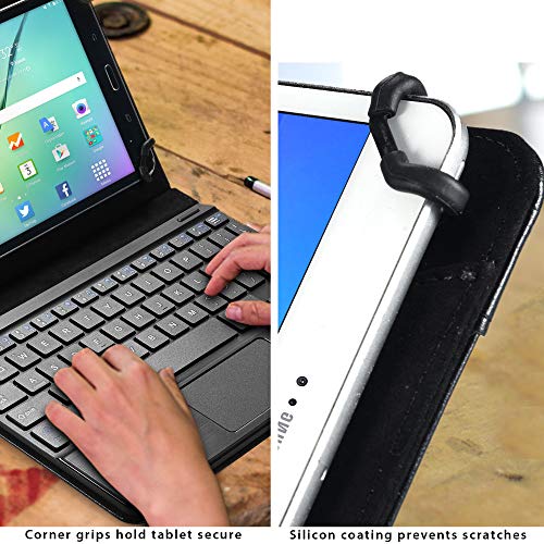 CUSTODIA A LIBRO IN PELLE 2-in-1 CON SUPPORTO, CAVALLETTO E TASTIERA RIMOVIBILE - utilizzabile sia come tastiera che come custodia antiurto per il tablet. Il cavalletto pieghevole consente la visualizzazione del display da diverse angolazioni senza l'uso delle mani. Rimuovendo l'involucro magnetico della tastiera si trasforma in una semplice cartella porta documenti. Il rivestimento esterno in similpelle di ottima qualità rende la custodia resistente, durevole e a prova d'urto.