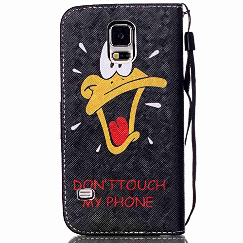 Custodia per Samsung Galaxy S5 Mini,TOCASO Nero Flip Wallet Case PU Pelle [Strap/Lanyard] Caso per Samsung Galaxy S5 Mini Portafoglio Cover Ultra Sottile Leather Protettivo Cases Covers Shell ID Carta Slots Caso Guscio Copertura con Stand Bookstyle Premium Slim-Fit Bumper Silicone Back Cover Folio Custodia (Duck)