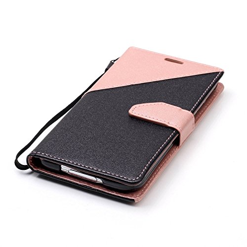 Custodia Samsung Galaxy S5,Ukayfe Stitching Colore Flip Case Cover per Samsung Galaxy S5,Samsung Galaxy S5 Lussuosa Astuccio Custodia Cover [PU Leather] [Shock-Absorption] Protettiva Portafoglio Cover Custodia Giuntura da Polso Foglio con Super Sottile Morbido Silicone TPU Interno Case e Porta carte di credito Portafoglio Custodia Protettiva Cover Copertura Tutta Potente per Samsung Galaxy S5-Nero + Oro rosa