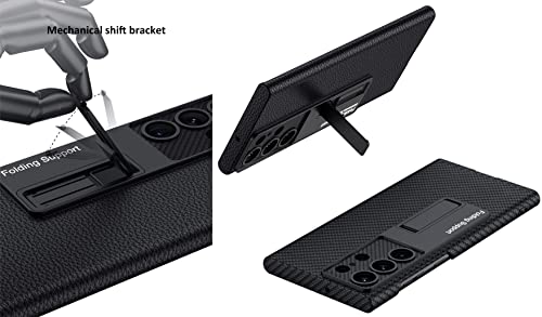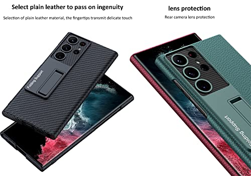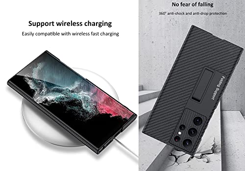 Custodia per Samsung Galaxy S22 Ultra. Cabina Telefonica per Samsung S22 Ultra. Staffa, Cover per Telefono in Pelle - Nero-Fibra di Carbonio