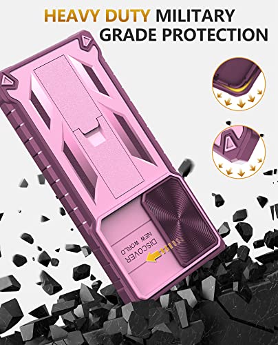 Custodia per Samsung Galaxy S22 Ultra: protezione militare anticaduta protettiva antiurto opaca robusta custodia rigida con supporto integrato e protezione fotocamera (rosa)