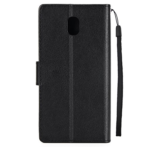 Custodia Samsung Galaxy J3 2017 Wallet Cover -MOONESS Retro Portafoglio Con Cinturino da Magnetico Slot Schede Internamente Silicone TPU Custodia Flip PU Supporto (Nero)