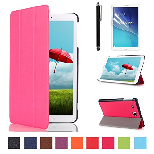 Custodia Samsung Tab E 9.6'',Smart Cover Book Style Custodia Cover in Pelle per 9.6'' Samsung Galaxy Tab E 9.6 T560 Custodia Caso Case PU con Supporto + pellicola protettiva + Pennino,Hot Rosa