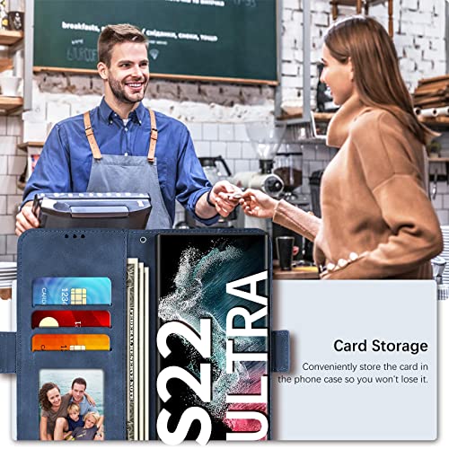 [Multifunzione] La per Samsung Galaxy S22 Ultra Cover pelle con 2 porta carte e 1 tasca per soldi per conservare tutte le carte di credito e il denaro necessario per la massima comodità. S22 Ultra samsung custodia forte chiusura magnetica a doppia faccia per la sicurezza dei tuoi effetti personali e protezione completa.