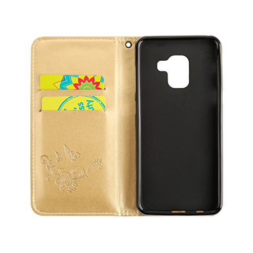 Custodia Sansung Galaxy A8 2018, Cover Sansung Galaxy A8 2018 Custodia Portafoglio, JAWSEU Lusso Elegante Rose PU Pelle Flip Cover Custodia for Sansung Galaxy A8 2018 Protectiva Bumper Copertura con Super Sottile Morbido Silicone Interno Case e Porta carte di credito PU Leather Wallet Case Cover for Sansung Galaxy A8 2018 Libro Portafoglio Custodia Pelle Con Supporto di Stand Custodia Cover per Sansung Galaxy A8 2018 - Oro
