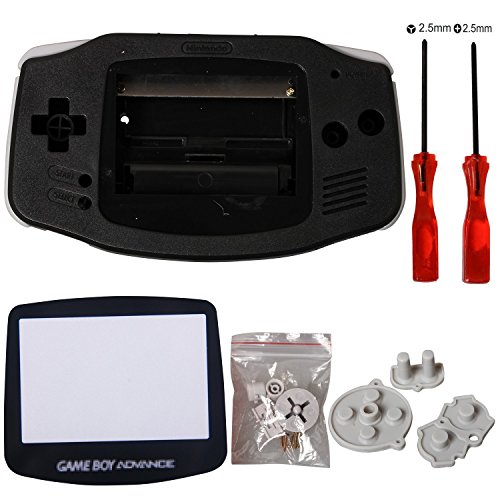 Custodia Shell Custodia con cacciavite e cuscinetto conduttivo in gomma per Gameboy Advance GBA (nero)