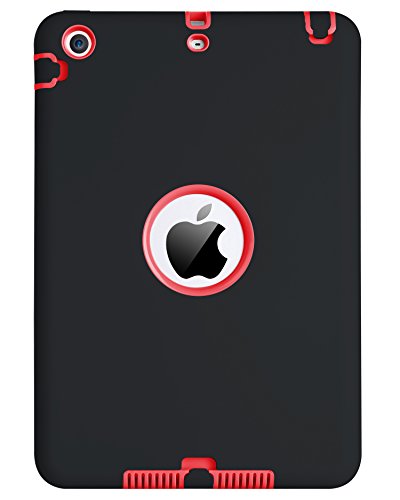 Custodia iPad mini 2 Custodia iPad mini 3 Custodia Silicone BENTOBEN Resistente ai graffi 3 in 1 Antiscivola Ibrida Duro Robusto PC Morbida Custodia per iPad Mini 1/2/3, nero rosso