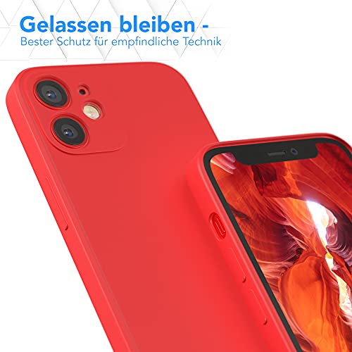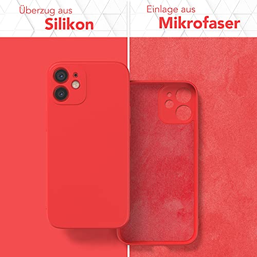 EAZY CASE Custodia in silicone compatibile con iPhone 12 Mini, cover sottile a doppio strato con protezione per fotocamera e fodera interna, in silicone, bumper, cover morbida, colore: rosso