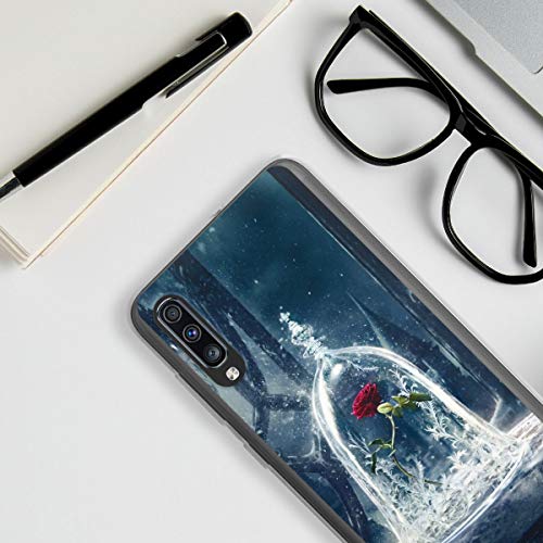 Custodia di silicone compatibile con Samsung Galaxy A70 Custodia trasparente Cover per smartphone trasparente La bella e la bestia Principessa Disney Rosa
