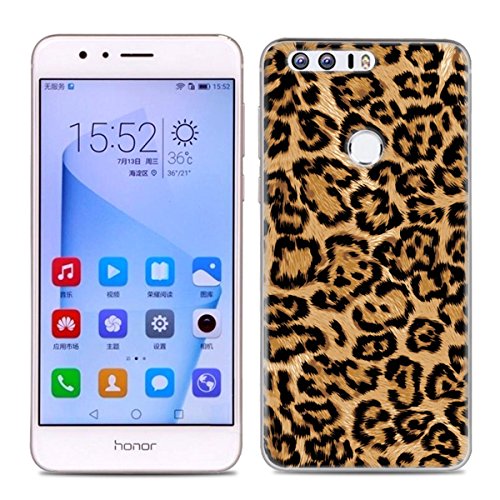 Custodia in Silicone per Honor 8, Fukalu Cassa del Respingente del Silicone Sottile Custodia Molle di TPU Fiore Animali Modello Trasparente Cornice Cover per Honor 8 Smartphone (Leopardo)