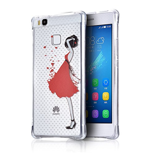 Custodia in Silicone per Huawei P9 Lite, Fukalu Cassa del Respingente del Silicone Sottile Custodia Molle di TPU Fiore Modello Morbidi Cuscini Trasparente Antiurto Cover per Huawei P9 Lite (Vestito rosso ragazza)