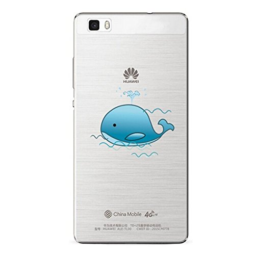 Custodia in Silicone per Huawei P8 Lite, Fukalu Cassa del Respingente del Silicone Sottile Custodia Molle di TPU Fiore Modello Trasparente Cover per Huawei P8 Lite (Balena Blu)
