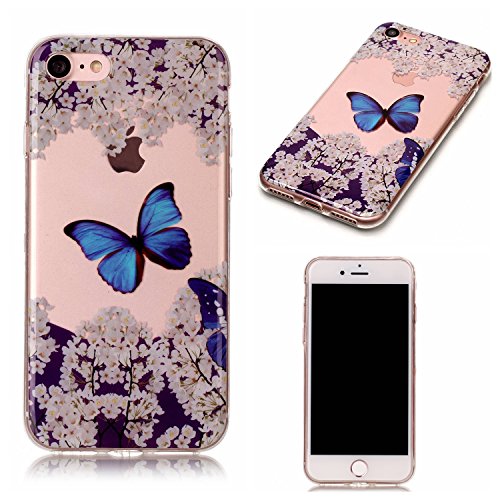 Custodia in silicone per iPhone 7 Plus, custodia Leeook di gomma per iPhone 7 Plus, sottile e bellissima, con motivi blu a fiori mandala, morbida, in silicone, anti-graffio, trasparente, flessibile e ultrasottile, cover in poliuretano termoplastico per iPhone 7 Plus da 4,7 pollici con 1 fiore mandala nero e blu
