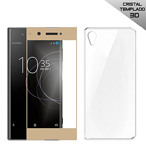 Pack Luxe - Custodia in silicone + pellicola in vetro temperato Premium 3D, (protezione dello schermo al 100%), per Sony Xperia XA1, colore oro