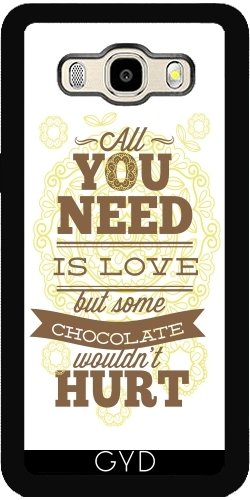 DesignedByIndependentArtists Custodia Silicone per Samsung Galaxy J5 2016 (SM-J510) - Tipografia Amore Divertimento Cioccolato by UtArt