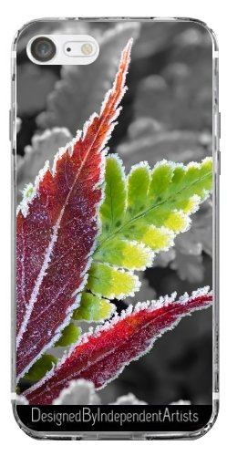 DesignedByIndependentArtists Custodia Silicone Trasparente per Iphone 7/Iphone 8 - Brina Su Foglia D'acero Rosso by Katho Menden