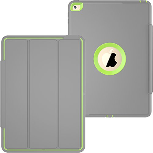 IPad Air 2 custodia, Smart Cover/custodia resistente estrema protezione doppio strato e sottile con piedi 3 in 1 per iPad Air 2 (2014 - 2016) Gray+Green iPad Air 2