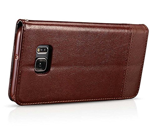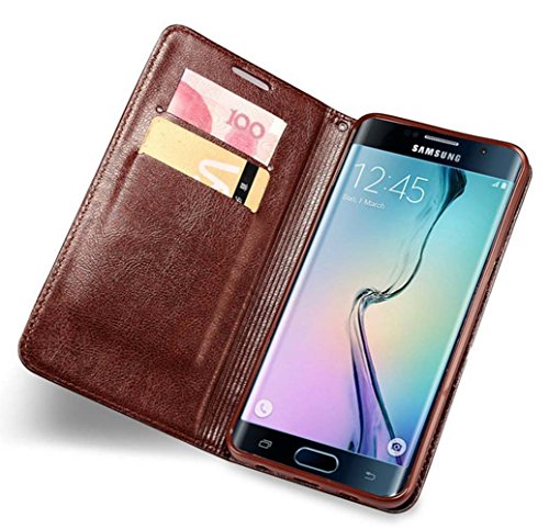 Dfly, custodia per smartphone, custodia a libro in ecopelle (PU) con doppio lato magnetico marrone Brown Samsung Galaxy S6 Edge