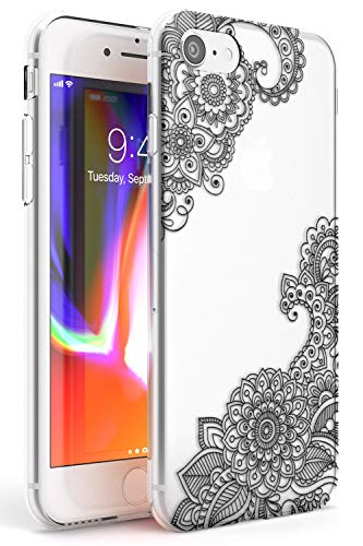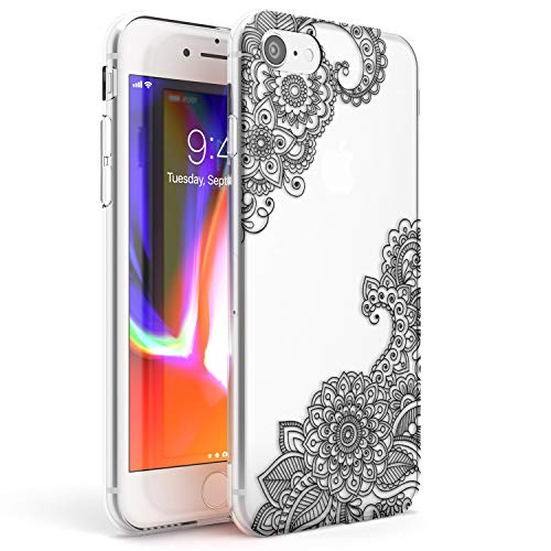 Custodia sottile per iPhone 7/8/SE, in TPU, leggera, resistente, con motivi astratti e mandala tatuaggi, colore nero