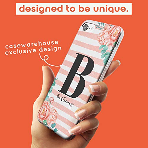 Custodia sottile per iPhone 6, in TPU, con monogramma floreale e strisce rosa, custodia protettiva resistente con fiori e lettere e nome, rosa