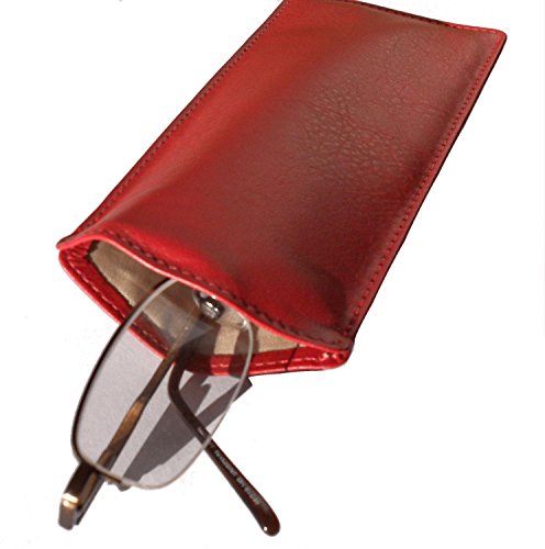 Custodia sottile in morbida pelle per occhiali, Rosso (Rosso) - ..