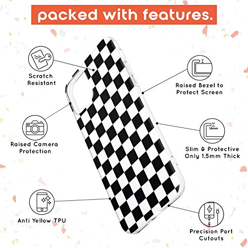 Custodia sottile a scacchi nera per iPhone 11 TPU protettiva leggera forte cover con motivi astratti a scacchiera plaid a quadri