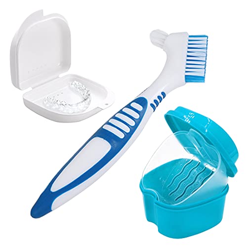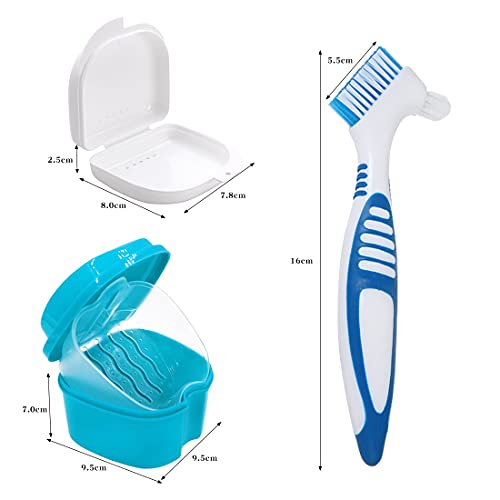 Custodia per spazzole per protesi, scatola per protesi, Custodie per bagno per protesi, scatola per bretelle, 2 piccole custodie per spazzole per dentiere Con spazzola di pulizia per protesi (3 pezzi)
