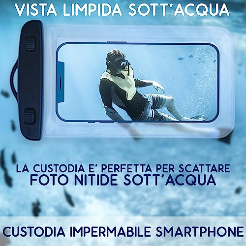 Custodia Subacquea Smartphone IPX8 [2 Pezzi], Custodia Subacquea per iPhone 13 12 11 PRO Max Mini, XR XS X SE 8 7 6, Samsung S22/S21/S20, Huawei Xiaomi Fino a 7.0"