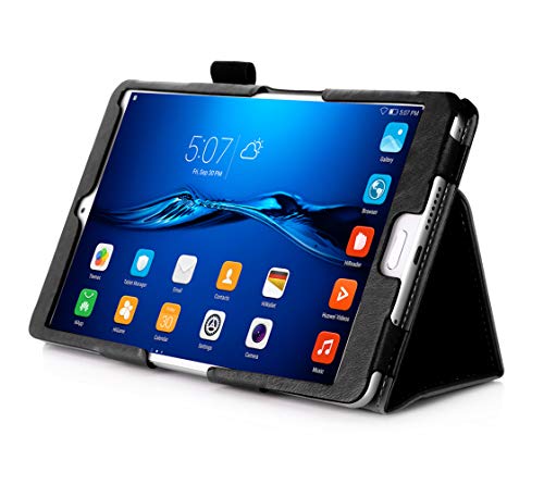 ISIN Custodia Tablet Serie Premium Pelle PU Stand Cover per Huawei MediaPad M3 8.4 BTV-DL09 e BTV-W09 WIFI 4G LTE Tablet PC con Cinturino in Velcro e Slot per Schede (Nero)