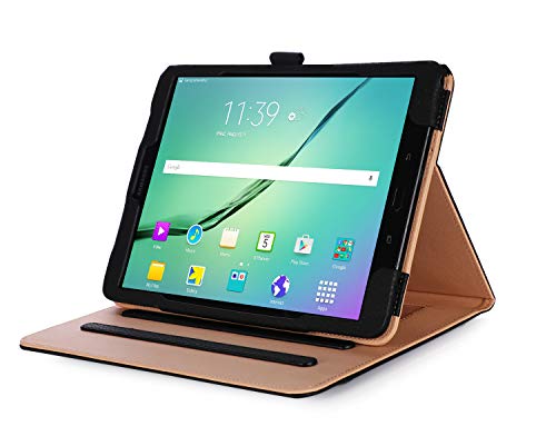 ISIN Custodia Tablet Serie Premium Pelle PU Stand Cover per Samsung Galaxy Tab S3 9.7 Pollici SM-T820 e SM-T825 Android Tablet con Cinturino, Multiple View Angeli e Documento di Tasca (Nero)