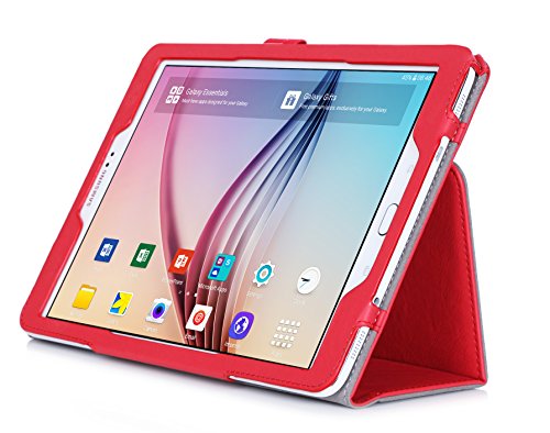 ISIN Custodia Tablet Serie Premium Pelle PU Stand Cover per Samsung Galaxy Tab S2 9.7 pollici Wi-Fi SM-T810 T813N / LTE SM-T815 T817 T819N Android Tablet con Cinturinoi in Velcro e Slot per Schede (Rosso)