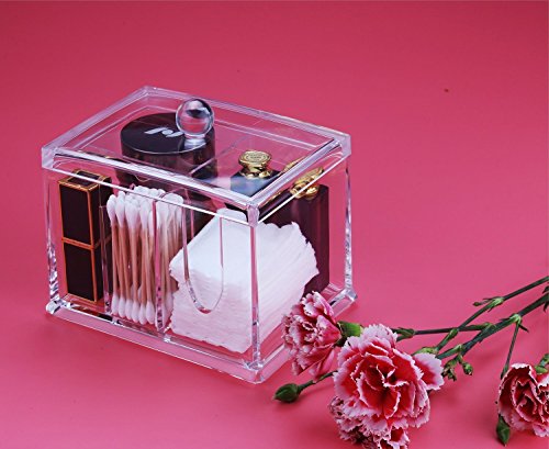 Custodia per Tamponi in Acrilico, Supporto per Tamponi di Cotone, Organizzatore Cosmetico per Dischetti, Q-Tips, Make Up Pads, 4 vani Portaoggetti per Bagno