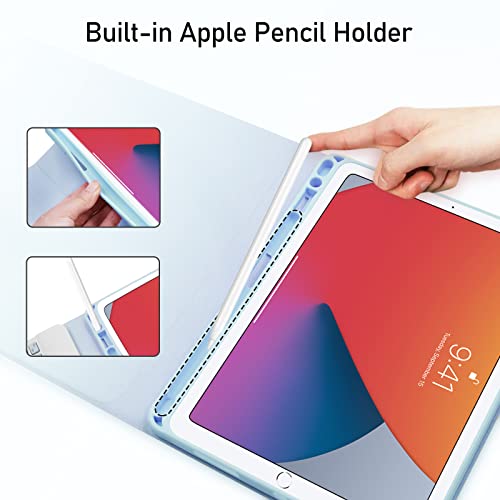 Custodia Tastiera per iPad 10,2 2021/2020/2019(9a, 8a e 7a Gen)/iPad Air 3 /iPad Pro 10,5 -Custodia Protettiva con Supporto per Apple Pencil, Tastiera Staccabile Wireless per ipad 10,2(Cielo Blu)
