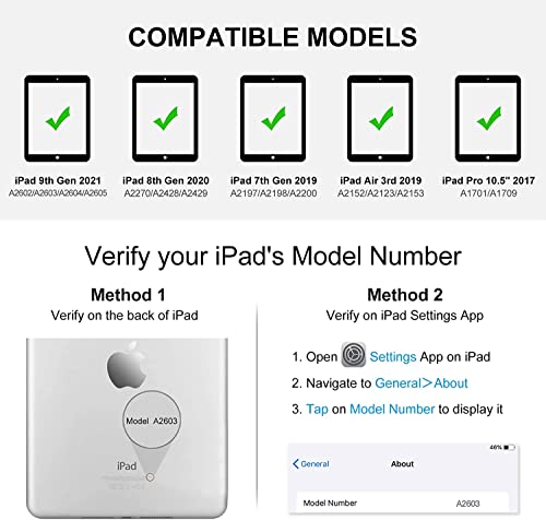 【COMPATIBILITÀ AMPIA 】Tastiera iPad 10.2" 9th Gen 2021(A2602, A2603, A2604, A2605), ipad 10.2 8th 2020 ( A2270, A2428, A2429 )/ iPad 7th ( A2197,A2198,A2200) per iPad Pro 10.5"2017 (A1701/A1709) / iPad Air 3 10. 5 (A2152,A2123,A2153,A2154),Controllare la parte inferiore del vostro iPad per trovare il numero di modello prima di acquistare.