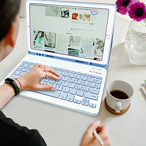 Custodia Tastiera per iPad 10.2/2021 9a Gen/ 2020 8 Gen/ 2019 7a Gen/iPad Pro 10.5/ iPad Air 3, Magnetica Cover con Bluetooth Layout Italiana Tastiera Staccabile Wireless (Cielo Blu)