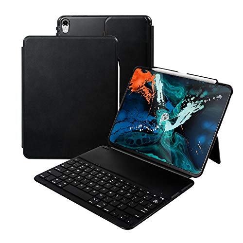 CHIN FAI Custodia con tastiera Bluetooth per Apple iPad Pro 11 2018 Tablet - Cover in pelle Folio ultrasottile con copertura per tastiera e matita senza fili magnetica (nera)