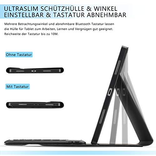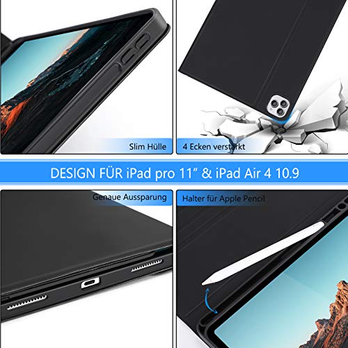 Custodia per tastiera illuminata, compatibile con iPad Air 4 2020 10.9/iPad Pro 11 2021/2020/2018 (3./2./1.Gen), tastiera wireless Bluetooth QWERTZ rimovibile con custodia, layout tedesco, nero