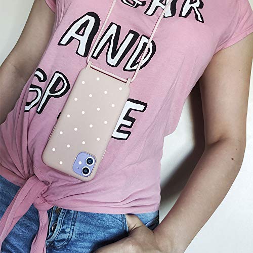 QULT Custodia per telefono con cordino - Custodia per telefono per iPhone 7 Plus / 8 Plus - Custodie per iPhone in silicone antiurto e resistente - Verde con pois