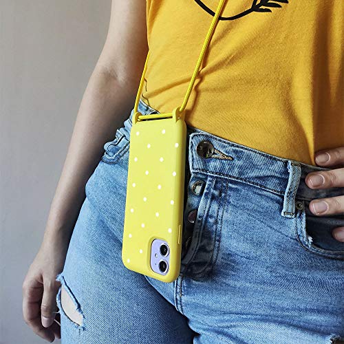 QULT Custodia per telefono con cordino - Custodia per telefono per iPhone 11 Pro Max - Custodie per iPhone in silicone antiurto e resistente - Verde con pois Giallo