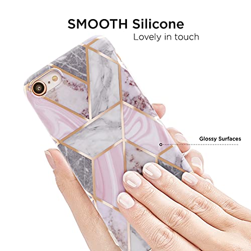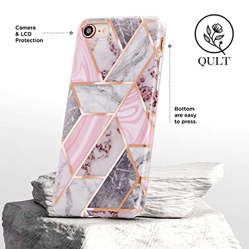 QULT Custodia per telefono Cover per iPhone 11 Pro Max - Custodia per iPhone in silicone in TPU - Elegante motivo marmorizzato - Bordi della fotocamera rialzati Mosaico Oro-Rosa Marmo