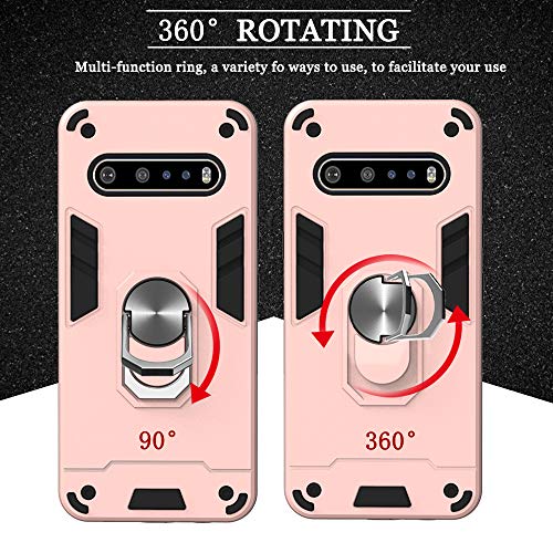 OATE Custodia per LG V60 ThinQ 5G Premium Protettiva con Pellicola in Vetro Temperato[2 Pack],360° Girevole Ring TPU Case Supporto Cellulare Silicone Antiurto Custodia per LG V60 ThinQ 5G,Nero