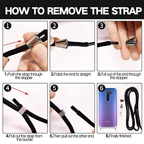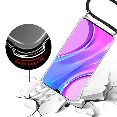 ISOI La Custodia Trasparente per Cellulare per Xiaomi Redmi 9 con Cordino può Essere trasportata Casualmente Come Una Borsetta o Una Tracolla Quando esci - Nero
