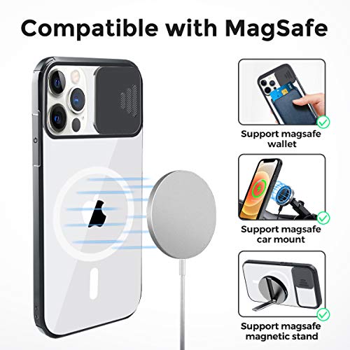 Custodia Trasparente Compatibile con iPhone 13 Pro 6.1" MagSafe [Protezione fotocamera Scorrevole] [38 Potenti Magneti incorporati] Custodia Magnetica Protettiva Antiurto con Silicone Bumper-Nero