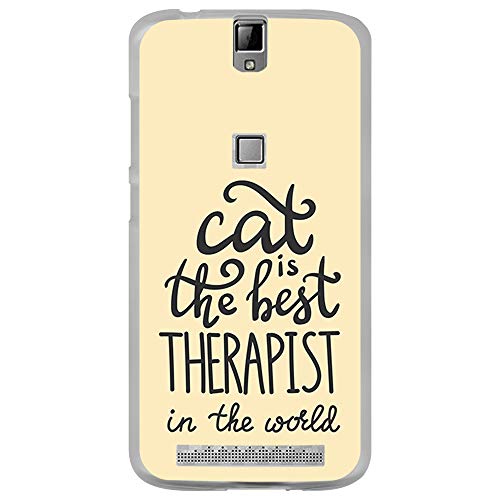 BJJ SHOP Custodia Trasparente per [ Elephone P8000 ], Cover in Silicone Flessibile TPU, Design: Frase Motivazionale, Terapia de Gatos, Cat is The Best Therapist in The World