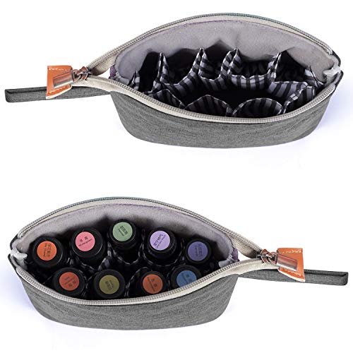 Custodia per il trasporto di olio essenziale Luxja-Holds 8 bottiglie (5ml-15ml, comprese le bottiglie a rulli), borsa da viaggio portatile per olio essenziale, pratica custodia per olio essenziale e piccoli accessori, grigio